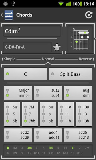 Você pode ouvir como soa cada diagrama arrastando o dedo sobre as cordas. Os diagramas são exibidas em cores e você pode ver as estatísticas sobre o dedilhado atual.
